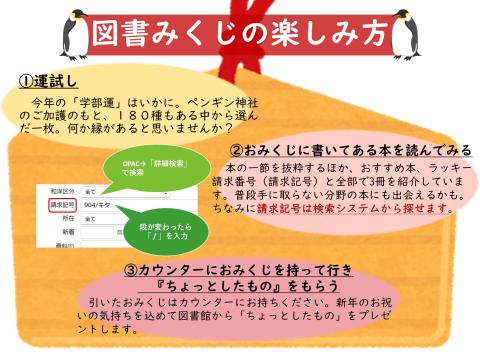 図書館で今年の運試しはいかがですか?🐧
