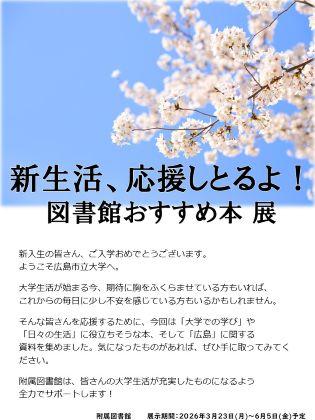 「新生活応援しとるよ!図書館おすすめ本展」を開催しています