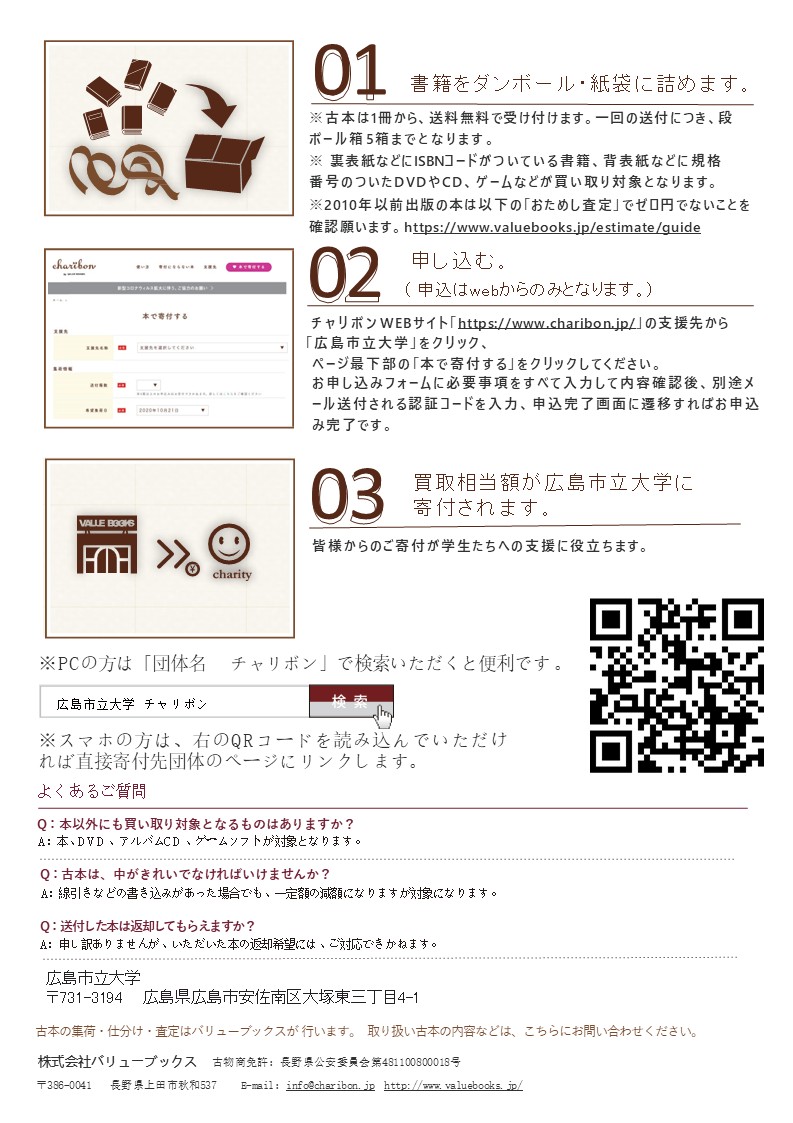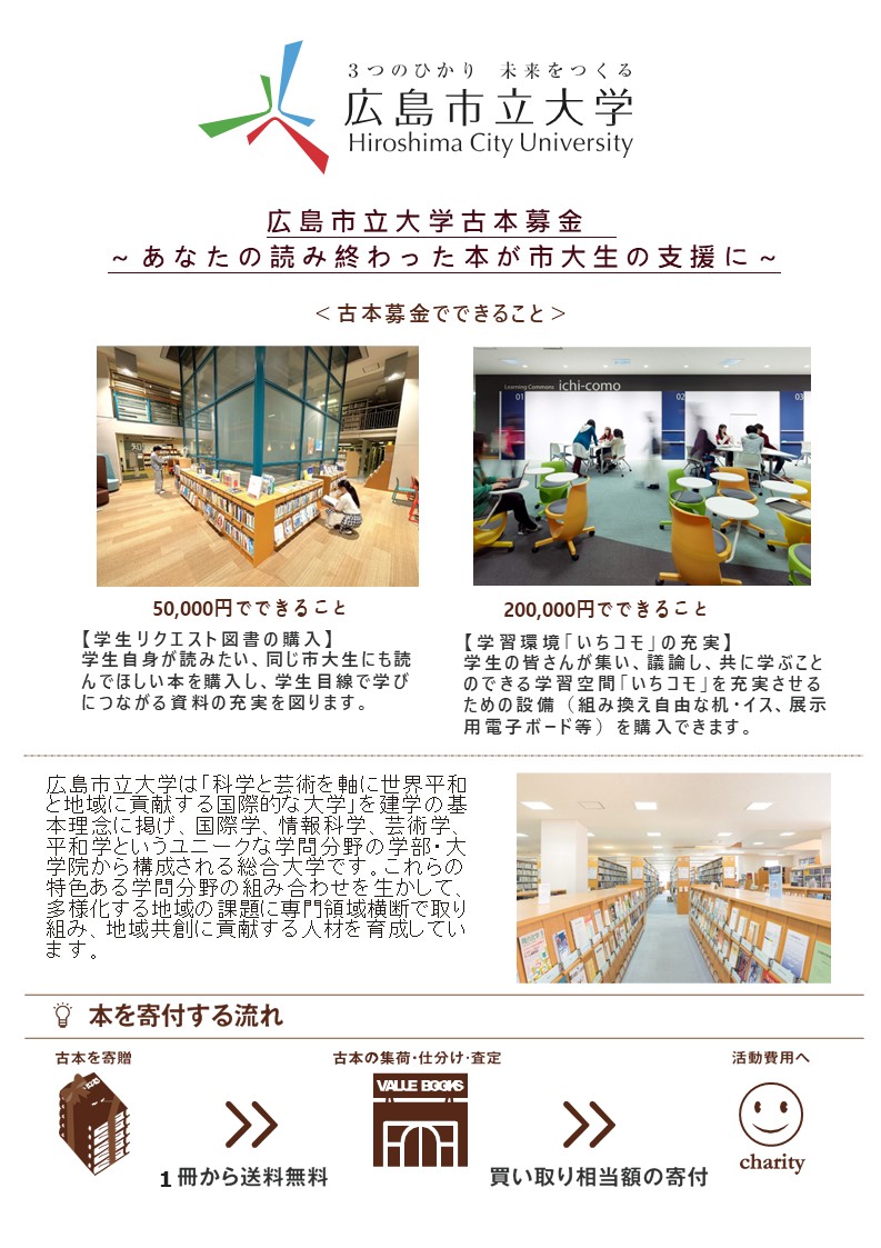 📚詳しくはこちらをご覧ください⇒「広島市立大学古本募金チラシ」