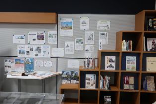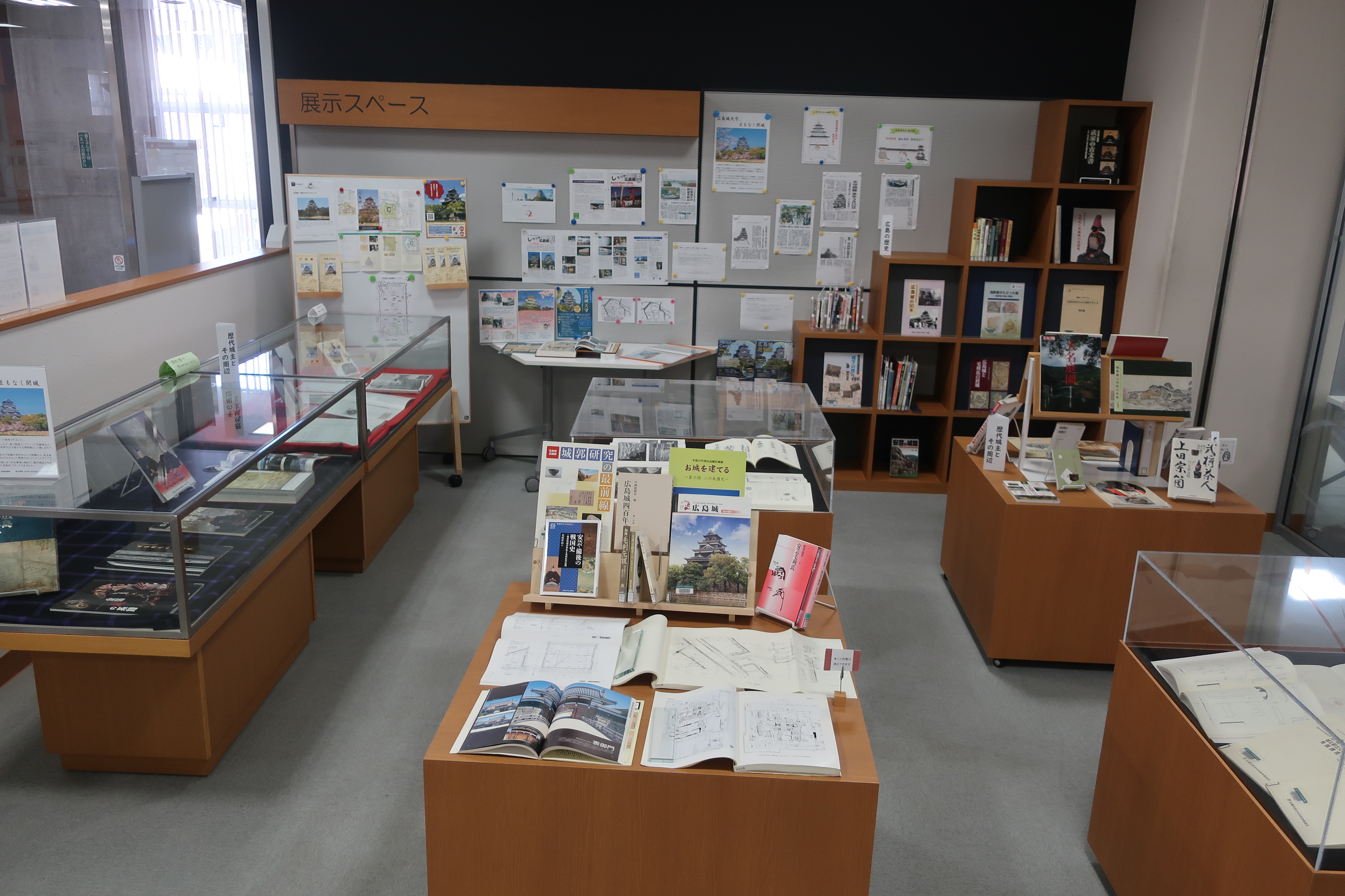 附属図書館では、広島城天守の歴史と歩みを振り返る資料を展示しています。